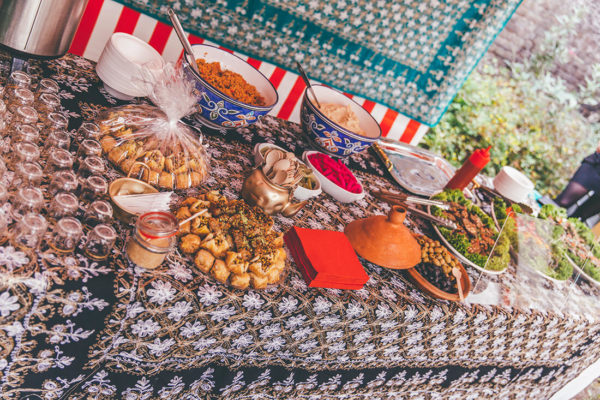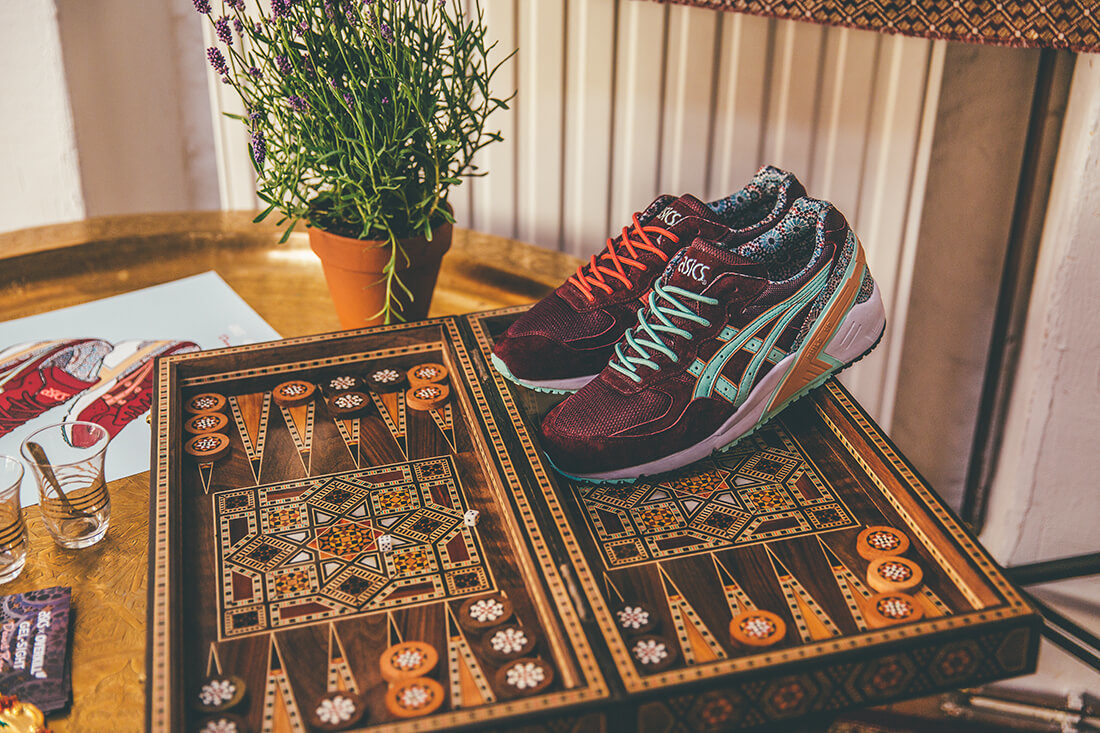 Und wie feiert man den Release eines “Desert Rose” besser als wie in einem Märchen aus 1001 Nacht? Wir haben haben unseren Innenhof in den Außenbereich eines marokkanischen Lokals verwandelt und unsere Gäste mit den feinsten Speisen und Getränken aus der orientalischen Küche verwöhnt. Um das märchenhafte Flair noch zu verstärken, konnte man seinen Körper mit professionellen Henna-Malereien verzieren und sich von Bauchtänzerinnen verzaubern lassen. Auch die Remise, in der wir den Verkauf Asics Gel-Sight “Desert Rose” abgewickelt haben, ist mit viel Liebe zum Detail im orientalischen Stil eingerichtet worden. Perserteppiche, Wandteppiche, orientalische Sitzkissen und entsprechende Tische haben ein authentisches Flair vermittelt und haben dem Kauf der Schuhe eine besondere Note verpasst.