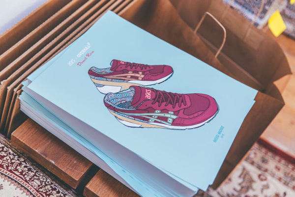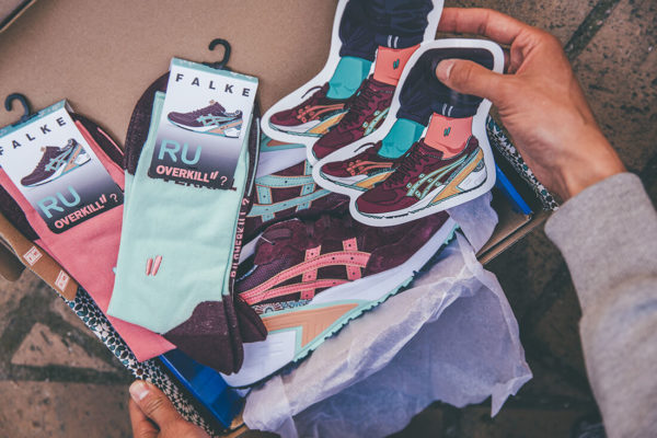 Natürlich haben wir auch hier ein paar Leckereien vorbereitet, um diese Kollaboration abzurunden. Unsere Freunde von Need More haben exklusiv für uns Poster designed, die es in begrenzten Umfang beim Release gab und zusammen mit Falke haben wir einen limitierten Run an Socken in zwei verschiedenen colourways produzieren lassen, die mit den Schuhen farblich matchen und zusätzlich mit dem Overkill Logo versehen sind. Dazu gab es noch limitierte Sticker und Overkill Lacetags und on Top eine limitierte Special Schuhbox, die mit einem Alloverprint des selben floralen Musters versehen war, welches sich auch bei den Schuhen wiederfindet.