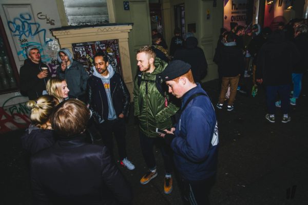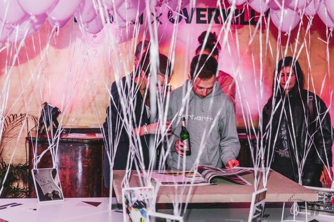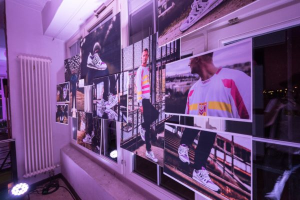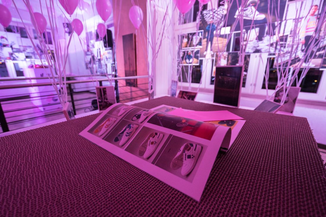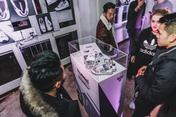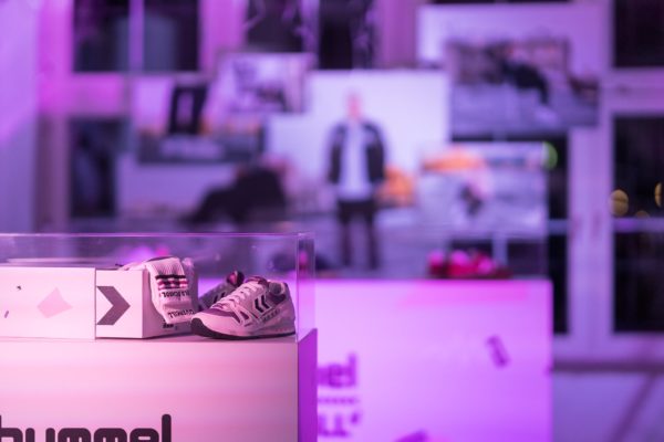 Im Anschluss an den mehr als erfolgreichen Verkauf ging es dann in den benachbarten Fluxbau, wo wir eine freshe 90er Party gefeiert haben, bei der DJ WIGM für den entsprechenden Sound gesorgt hat. In der oberen Etage haben unsere Homies von Grabbing Hands einige flashige original 90er Klamotten aus ihrem Fundus bereitgestellt, die man sich für ein kleines Fotoshoot ausleihen konnte. Dazu waren alle Editorials auf großen Leinwänden aufgezogen und zusätzlich zu einigen originalen hummel Archivmodellen und -katalogen ausgestellt.
