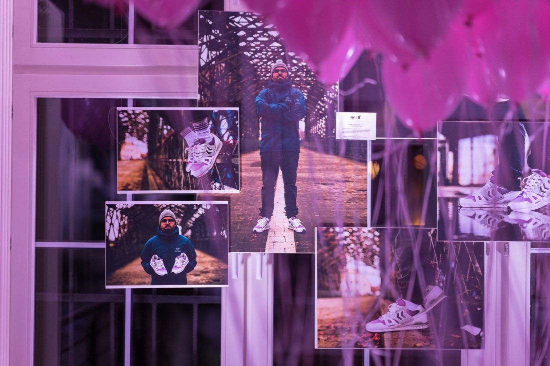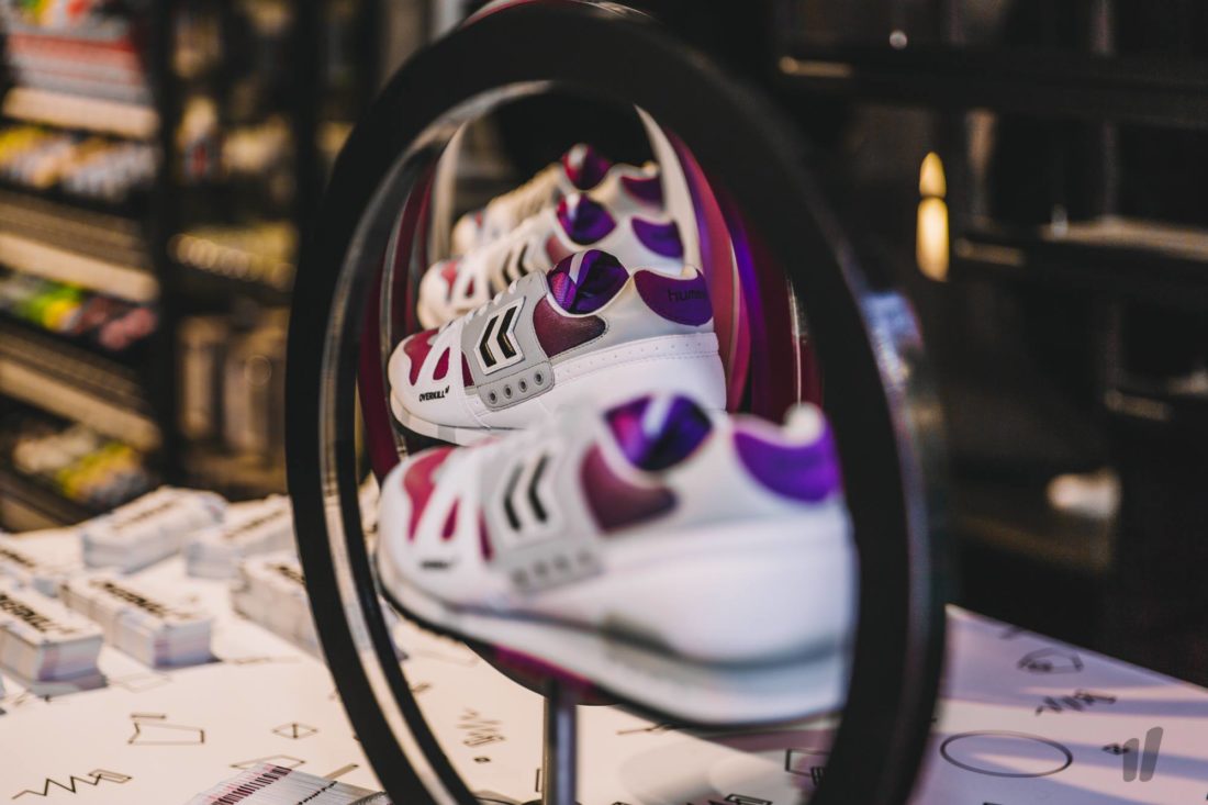 Bei einem feuchtfröhlichen Abend in unseren heiligen Hallen begann das Brainstorming zum Design und der Zufall wollte es, dass die waschechten 90er Ikonen und guten Freunde vom #teamoverkill, “Coolmodie” und “Doom”, an diesem Abend anwesend waren und sich daran beteiligten. Das hat gepasst wie die Faust aufs Auge, denn der Marathona war von Anfang an im 90er Retro Runner Design geplant und so ist es dann auch zu dem Ergebnis gekommen, über das wir uns alle gefreut haben: Der knackige OVERKILL x hummel Marathona C(oolmodie) D(oom) O(verkill) OG, der mit seinem klassischen grau/weißen Farbweg und dem lila Fading perfekt die Stylevorlieben des freundschaftlichen Triumvirats widerspiegelt.