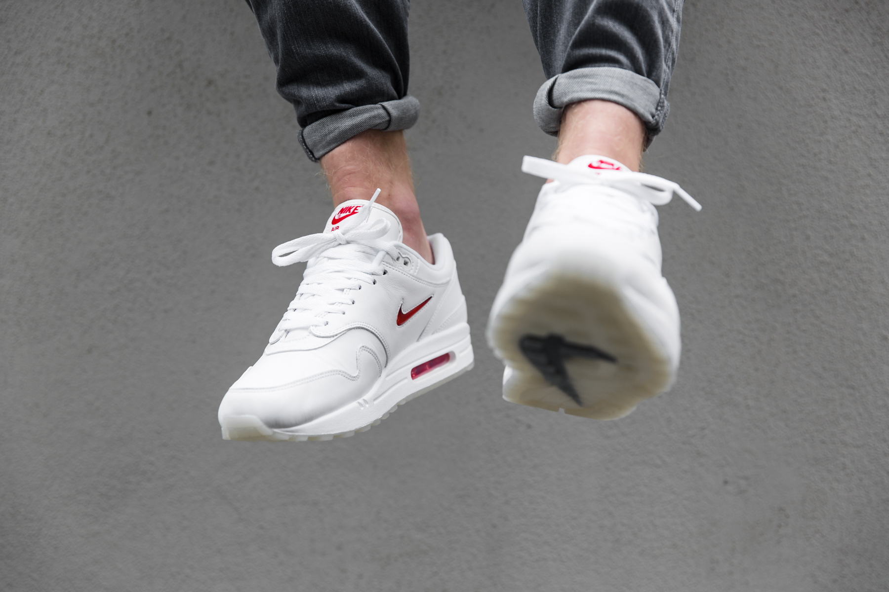 Und jetzt, 20 Jahre nach die kleinen Juwelen das erste Mal auf einem Nike Air Max 1 zu sehen waren, sind sie wieder da. In den letzten Wochen kamen auch schon die Air Force 1 als Low und Mid Version, sowie der Cortez als Jewel Varianten, aber der 1er Jewel ist der, auf den wir uns am meisten freuen.