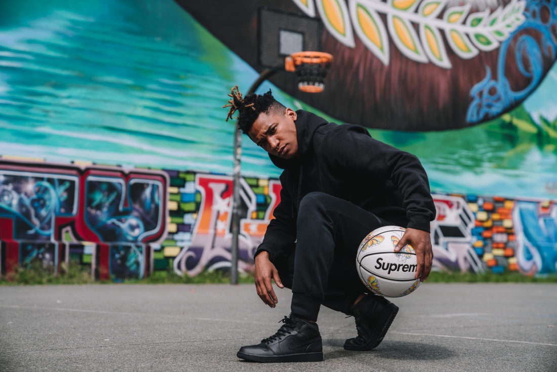 Dazu kommen die Silver Bullets natürlich besonders fresh aber auch die Air Jordan 1 Mid in triple black kommen zu zu dem all black Outfit super.