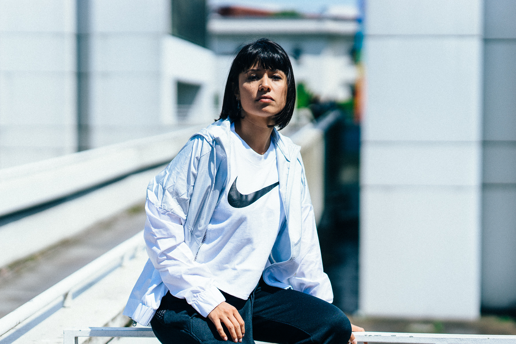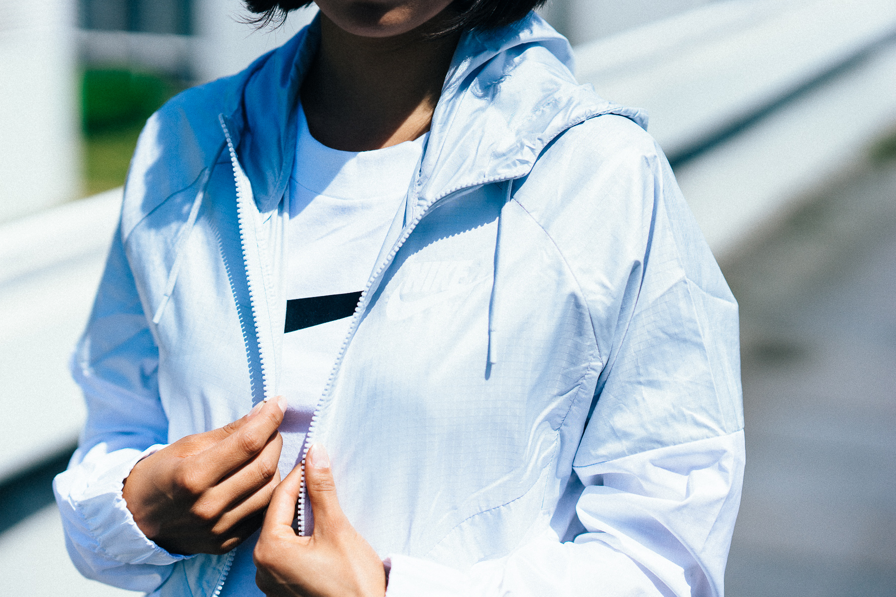 Lässig unterwegs ist man auch mit der neuen Nike Wmns Sportswear Windrunner Jacket, besonders in Kombination mit der Nike Wmns Bonded Pant. Ein absolutes Highlight bei diesem Outfit ist allerdings das Sportswear Top von Nike, das mit seinem leicht gecroppten und entspannten Schnitt an sich schon sehr nice kommt, aber dadurch, dass der komplette Rücken aus luftigem Mesh besteht, vollends zu überzeugen weiß. Die Nike Air Max Jewell runden das Bild an dieser Stelle komplett ab und das sportliche und stylishe Nike-Outfit steht. Mit dem Alan Backpack von Ucon Acrobatics hat man dann zusätzlich noch einen starken und gut aussehenden Begleiter, um sein Hab und Gut zu verstauen.