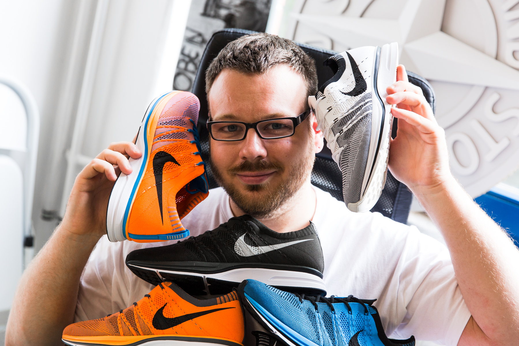 Im Gegensatz zum Retro konnte man die OG Trainer in keinem Sneakerstore kaufen, sondern hat sie ausschließlich bei Nike direkt bekommen. Das hatte dementsprechend zur Folge, dass Marc extra zum damals noch existierenden Nike Town am Ku’damm musste, um sich seine Paare zu sichern. Das an sich war schon nervig genug, aber erschwerend kam da noch hinzu, dass er dort den vollen Preis bezahlen musste, was für ihn zu diesem Zeitpunkt eher unüblich war. Das Problem war nur, dass es dort eine “one per customer” Politik gab, die seinem “one to rock, one to stock” Prinzip im Wege stand. Aber Marc wusste sich natürlich zu helfen und ist gemeinsam mit seiner Mutter bei Nike Town eingerückt und hat den Laden mit 20 Paar frischer Flyknit Trainer verlassen.