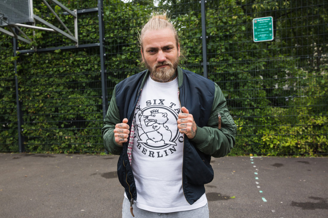 “Lucky Six ist ein geiles Tattoostudio in Prenzlauer Berg, wo ein alter Kumpel von mir arbeitet. Den kenne ich noch aus alten Graffiti Zeiten und nun ist er Tätowierer. Da lass ich mir gerade den ganzen Rücken tätowieren.