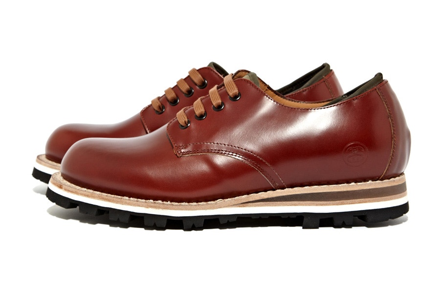 Für die Herbst / Winter-Saison 2012 hat Stussy Deluxe mit den italienischen Schuhdesignern BePositive an einer weiteren klassischen Silhouette gearbeitet. Passend zu Stussy Deluxe’s ausgereifter und raffinierter Ästhetik bietet der ‘Work Shoe’ ein 100% poliertes Obermaterial auf einer traditionellen Vibram-Arbeitsschuhsohle. BePositive unterstützt die Form und Funktionalität der Silhouette durch eine Neopren-Fußsohle und ein gepolstertes Innenfutter, während die letzten Details in Form von “SS” -Branding an der Fersenkappe, Dual-Branding an der Einlegesohle, gewachsten Schnürsenkeln und Metallösen zu sehen sind.