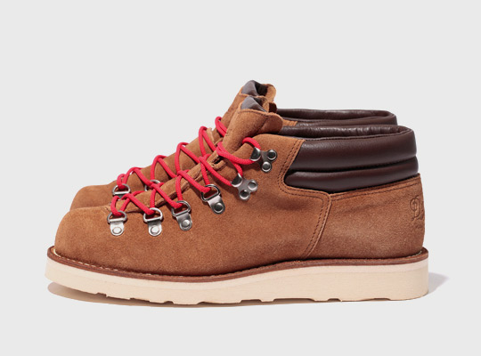 Anfang 2012 hat sich Stussy zusammen mit dem Schuhhersteller Danner zusammen an dessen Mountain Ridge Mid Stiefel gemacht. Der Stussy x Danner Mountain Ridge Mid passte perfekt zu dem 2012 angesagten urban Mountaineering-Trend und bietet mit seiner mittleren Schnitthöhe und der leichten EVA-Sohle eine gewisse Lässigkeit. Doch dank des robusten Wildleder-Obermaterials und der gepolsterten Knöchelmanschette ist es immer noch ein echter Wanderschuh.