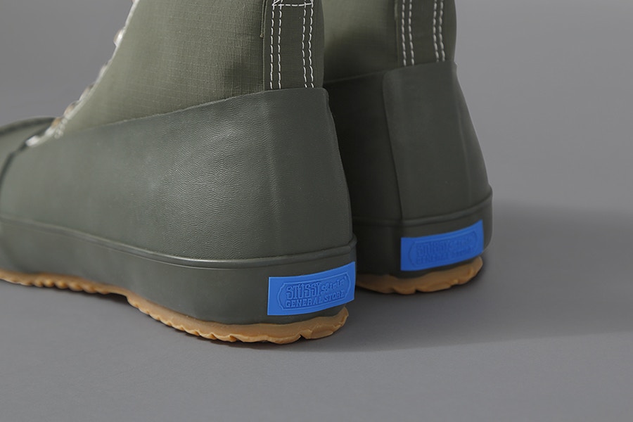 Das japanische Schuhlabel MoonStar und STUSSY Livin ‘GENERAL STORE, ein in Japan ansässiger Store – wo Stussy keine Bekleidung, sondern nur Lifestyle-Produkte und Dinge für’s alltägliche Leben anbietet – haben sich mit einer kleinen Kollektion von Regenstiefeln zusammengetan. Jeder Stiefel verfügt über ein Canvas-Obermaterial, das mit einem Gummi-Panel kombiniert ist, der um die gesamte Länge des Schuhs verläuft. Texturierte Zehenboxen, robuste Anti-Rutsch-Lauffläche und gewachste Schnürsenkel runden die Details dieser Stiefel ab.