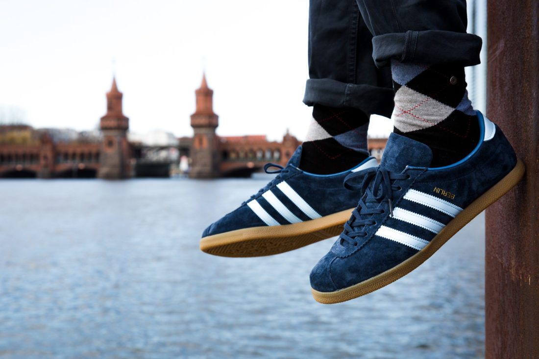 Im Rahmen der City Series hat adidas Ende der 70er Jahre das Modell London herausgebracht, einen preisgünstigen Sport- und Freizeitschuh. Etwas später kam die selbe Silhouette in weiteren colourways und mit anderen Städtenamen heraus und so gab es dann neben dem London auch den Dublin in blau/rot, den Köln in royal blau/weiß und eben auch den adidas Berlin in dunkelblau/weiß.