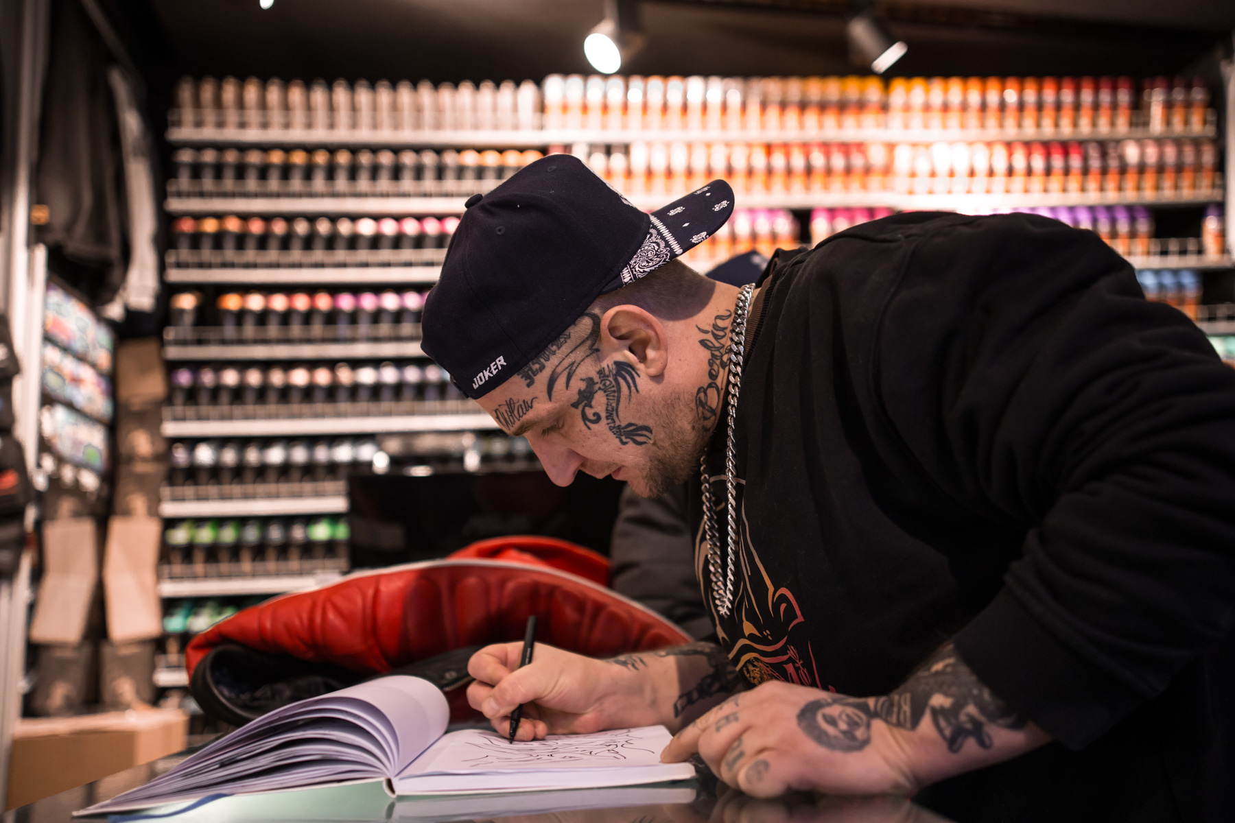 Und dann gibt es da natürlich noch euren Laden. Ein Kumpel von mir hat hier damals gearbeitet, mit dem habe ich auch Trains gemacht. Und da bin ich natürlich auch mal hergekommen. Und ja, ihr habt vernünftige Schuhe. Auch Dosen, da kann man sich immer eindecken. Ihr habt euch von nem kleinen Untergrund-Magazin zu nem Laden entwickelt, den man europaweit kennt. An der Stelle gratuliere ich euch mal.