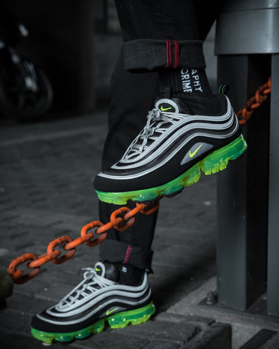 After we published two articles with moving pictures, now follows the third and last one. The topic “PAST MEETS PRESENT” is omnipresent for us, Overkill is now 15 years old. We are old school and new school at the same time. We link the OG-Heads with the younger generation. We have deliberately chosen this contrast as a guideline for this implementation. The Vapormax97 is a prime example of this topic, but it can be transferred beyond our interests and passions.