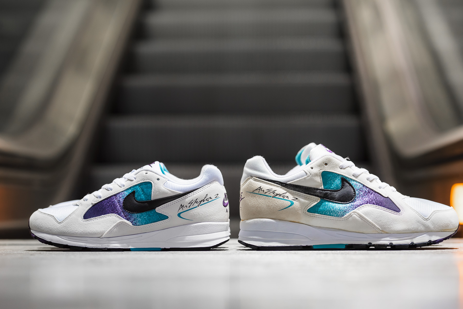Der Nike Air Skylon II, der besonders durch das Farbfading am Seitenpanel und den wie als Unterschrift aufgebrachten Modellnamen an der Ferse besticht, zählt definitiv zu den gelungen Retros.