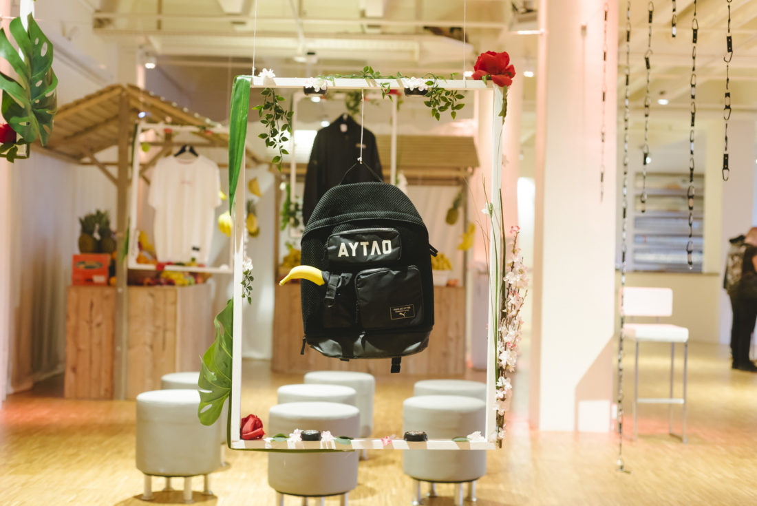 Dafür haben wir den Spreespeicher in einen Eventspace mit tropischen Obststand und BBQ verwandelt. Darüberhinaus haben wir eine über den ganzen Abend stark frequentierte Fotoecke eingerichtet und als Highlight konnte man sein Handicap am Golf-Simulator verbessern. Apropos Highlights… für die early birds gab es noch eine kleine Überraschung. Die ersten Gäste haben von uns ein Goodiepaket bestehend aus einem limitierten OVERKILL x Outlaw Moscow x PUMA T-Shirt, einem entsprechend gebrandeten Karabiner und einem Multitool in Kreditkartenformat.