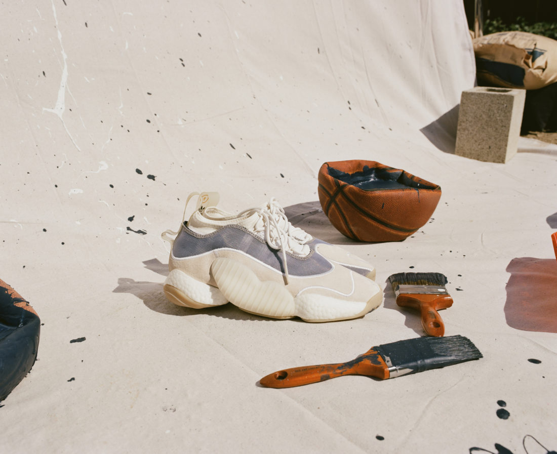 Ihre Interpretationen von Sportkleidung für den Bereich Menswear unterscheiden sie von den meisten anderen Fashion Brands. Man hat selten eine Kollektion gesehen, die den Flair und die Funktionalität von geiler Basketballkleidung auf so eine coole Art in eine zeitgemäße Mode-Umgebung transformiert. Farblich sind alle drei bei uns erhältlichen Apparel Teile in einem sehr hellen Braun gehalten, das fast schon in einen Marmorton übergeht. Als cooles Detail ist auf allen Stücken der Kollektion ein Co-Branding der beiden Marken zu finden, mal auffällig, wie beim Warm Up Tracktop, mal unauffällig, wie bei der Pant und den Shorts. Neben der beschriebenen Bekleidung sind des Weiteren zwei Lifestyle Schuhe erhältlich, die ebenfalls ihren Ursprung im Basketball haben. Das von adidas Originals im letzten Jahr eingeführte Modell Crazy BYW I, sowie dessen flach geschnittene Variante Crazy BYW II kommen farblich schön abgestimmt auf die Apparel Teile mit variierendem Colorblocking im Colorway Collegiate Navy / Cloud White / Footwear White. Beide Versionen bieten im Upper eine Mischung aus hochwertigem Glattleder, erstklassigem Nubukleder und technischem Knit-Textil. Der Crazy BYW wurde unter anderem von Kobe Bryants KB8 inspiriert, der später als Crazy 8 wieder aufgelegt wurde. Aus dieser Verknüpfung ist auch das “Crazy” im Namen hervorgegangen. Insbesondere die Form der Sohle erinnert an Kobes Zeit bei adidas in den frühen 2000er Jahren, die beim Crazy BYW als BOOST-Sohle auftaucht und somit auf dem neusten Stand der aktuellen technischen Entwicklung ist.