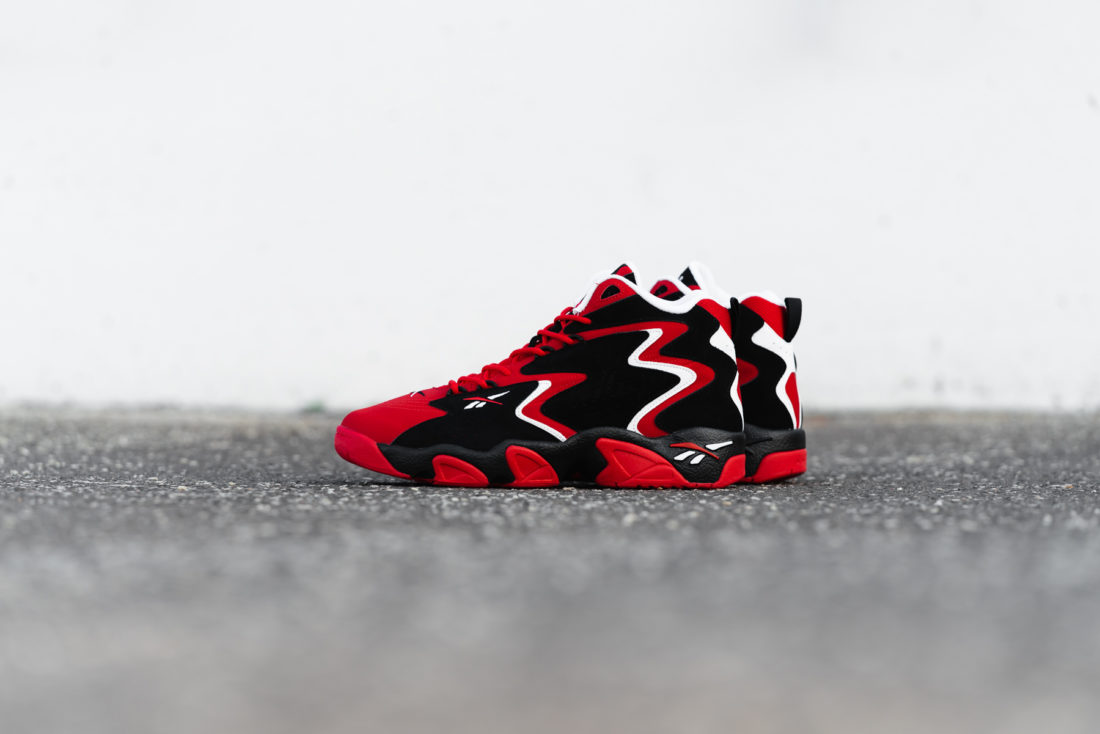 Abkehr von den Lieblings-Brands. Der Reebok Mobius war solch ein Schuh. Sowohl das Upper, wie auch die Sohleneinheit des Mobius waren alles andere als ein klassisches Basketballdesign, man war sich nicht einmal mehr sicher, ob dieser Schuh tatsächlich ein Basketballschuh sein sollte. Seine verwirrenden, hypnotischen Muster, die sich über das gesamte Upper und die Sohle zogen, waren absolut OVER THE TOP. Das minimale Reebok Branding sorgte sogar für noch mehr Unruhe, da er das wabernde Muster versucht zu zerstören. Doch der Schuh funktionierte damals genauso, wie er auch heute funktioniert.