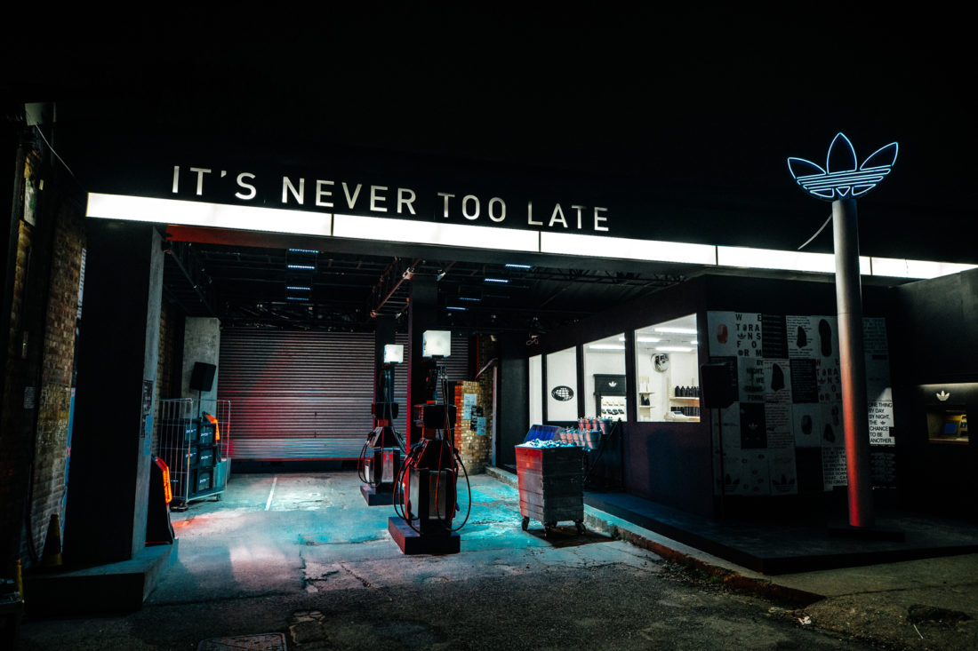 Um kurz vor 19 Uhr Ortszeit ging es dann zum Event. Extra dafür bereitgestellte Shuttlefahrzeuge haben uns nach Peckham gebracht und dabei eine der gefährlichsten Gegenden Londons durchquert, wie uns unser Fahrer versichert hat. Messerstechereien stehen dort an der Tagesordnung und Taxifahrer weigern sich, dort hinzufahren. Wir waren natürlich sicher und kamen nach ca. einer halben Stunde an der Location an. Es handelte sich offensichtlich um eine alte Tankstelle, wo im Außenbereich große mit Eiswürfeln gefüllte Mülleimer gekühlte Bierdosen beherbergt haben, die natürlich freudige Abnehmer fanden. Der “Kassenraum” war ebenfalls mit Bier gefüllten Kühlschränken ausgestattet und ansonsten in schwarz/weiß gehalten. Beim Einlass hat man eine Kreditkarte bekommen, mit der man an einem extra aufgestellten Geldautomaten Gutscheine für Workshops ziehen konnte, die später zum Einsatz kommen sollten. Natürlich wurden inzwischen fleißig Fotos geschossen, denn das Setting war wirklich nice.