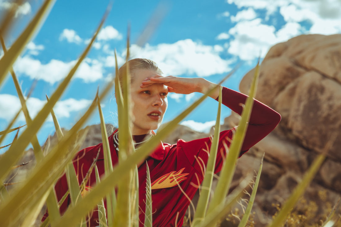 Ein Marketingmitarbeiter von Djinns ist vor mittlerweile ein paar Jahren auf uns zugekommen und hat uns relativ lange immer wieder angesprochen, ob wir denn nicht eine kleine Kollektion für sie designen wollen. Das war noch zu den Zeiten als wir einen Womenswear Store in Berlin hatten. Als wir dann Jahre später zeitlich etwas Luft, haben wir dir Idee noch mal aufgegriffen und mit dem Djinns Gründer höchst persönlich an Designs gearbeitet. Wir kamen an einem Wochenende mit ziemlich crazy Moods nach Essen gefahren, wo Djinns sitzt und der Gründer Jens hat total schnell und offen unsere doch etwas merkwürdigen Ideen gezeichnet, Materialen in Asien gesucht und ist an die Prototypen Produktion gegangen. Währenddessen sind wir nach LA geflogen und haben in der Wüste mit Filmemacher Matt Sundin unsere Kampagne fotografiert.