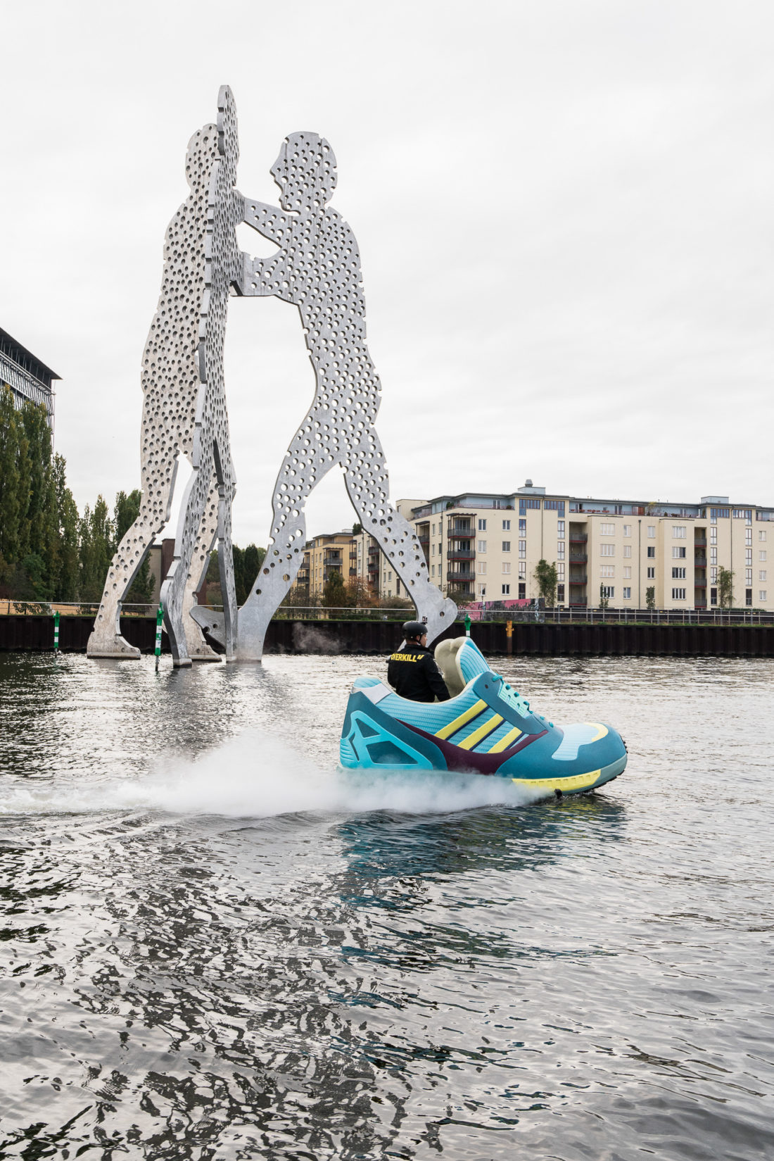 “Ey, kiek mal…da fährt ein Schuh auf’m Wasser”. Diese Reaktionen waren an der Tagesordnung, als wir nach wochenlanger Vorbereitung und diversen Tests endlich unseren ZX Aqua Rider, einen Jet-Ski in Form des legendären adidas ZX 8000 OG zu Wasser lassen konnten. Aber warum eigentlich ein Turnschuh auf dem Wasser? Ganz einfach: der Spitzname des türkisfarbenen adidas ZX 8000 OG – “Aqua” – made us do it.