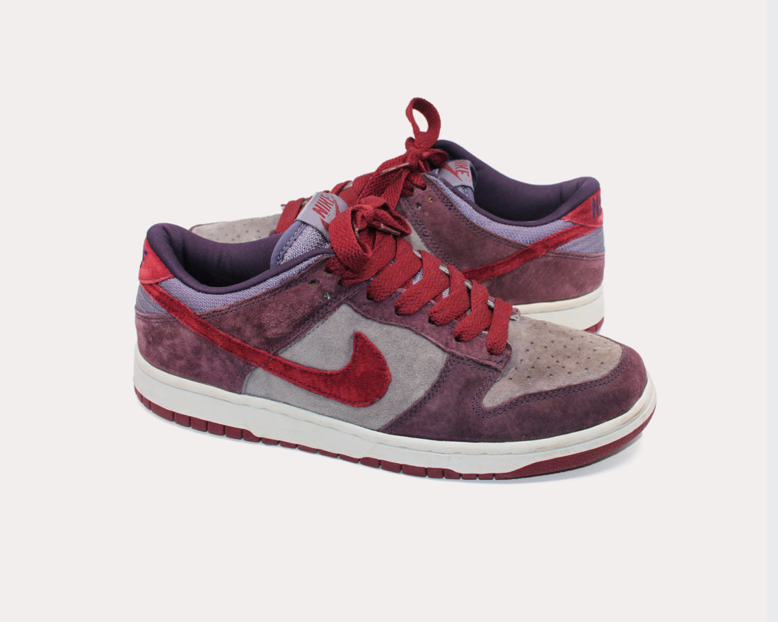 19 Jahre nach dem Original kommt an diesem Freitag die Neuauflage des Nike Dunk Low Pro B “Plum“ co.jp. Die Pro B Dunks, zu denen der “Plum“ und auch der schon oben erwähnte “Viotech“ Dunk gehören, gelten bekanntlich als Vorläufer der Nike SB Dunks. Die Namensergänzung “co.jp“ zeigt an, dass beides Colorways sind, die damals ausschließlich für den asiatischen, respektive japanischen Markt released wurden und nirgendwo anders erhältlich waren. Mathematisch gewiefte Leser werden bereits errechnet haben, dass der an diesen Freitag kommende “Plum“ Dunk Low erstmalig im Jahr 2001 auf den Markt gekommen ist. Er war damals zusammen mit den sogenannten “Veneer” und “Ceramic” Dunks Teil von Nikes “Ugly Duckling“ Pack.