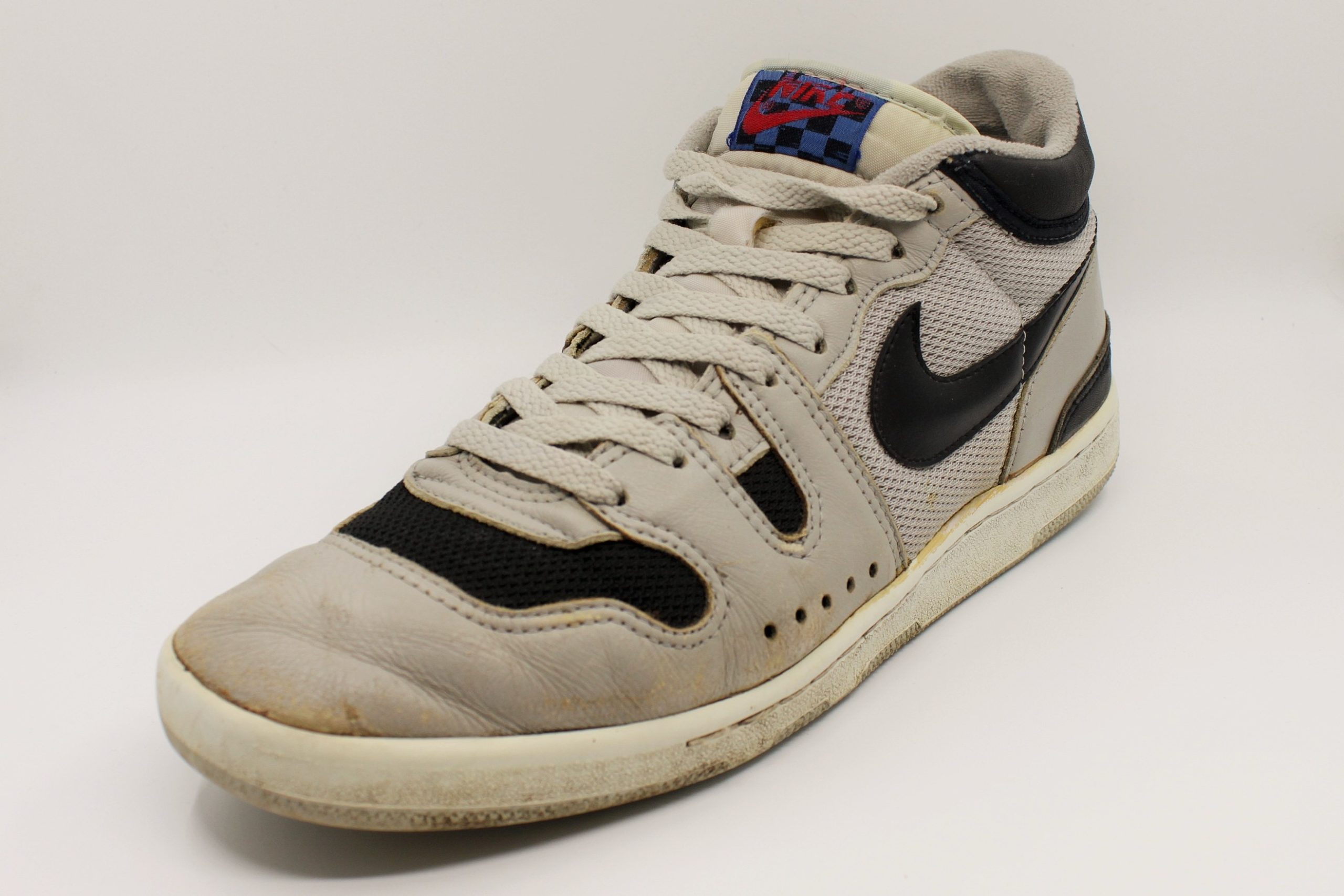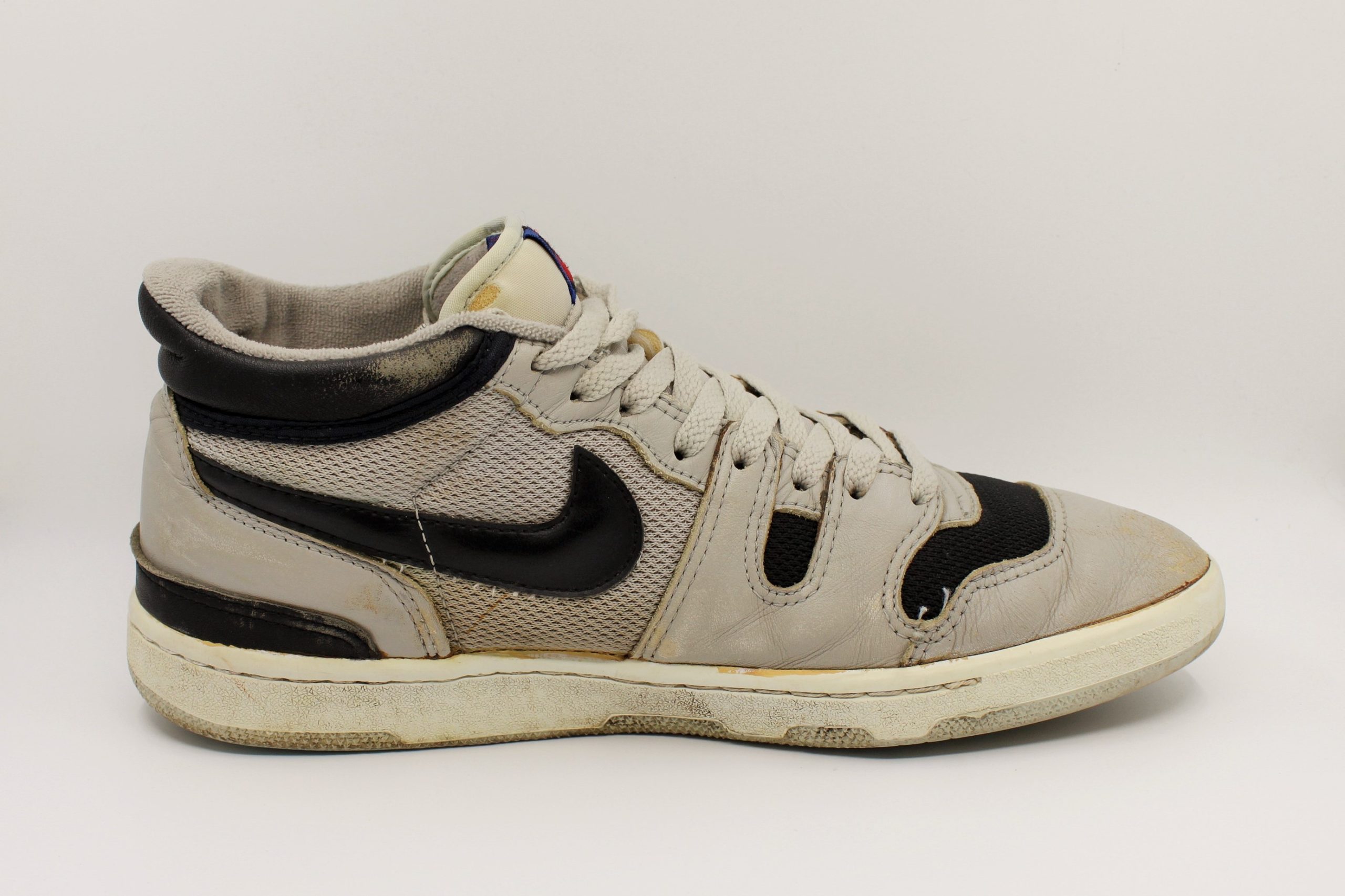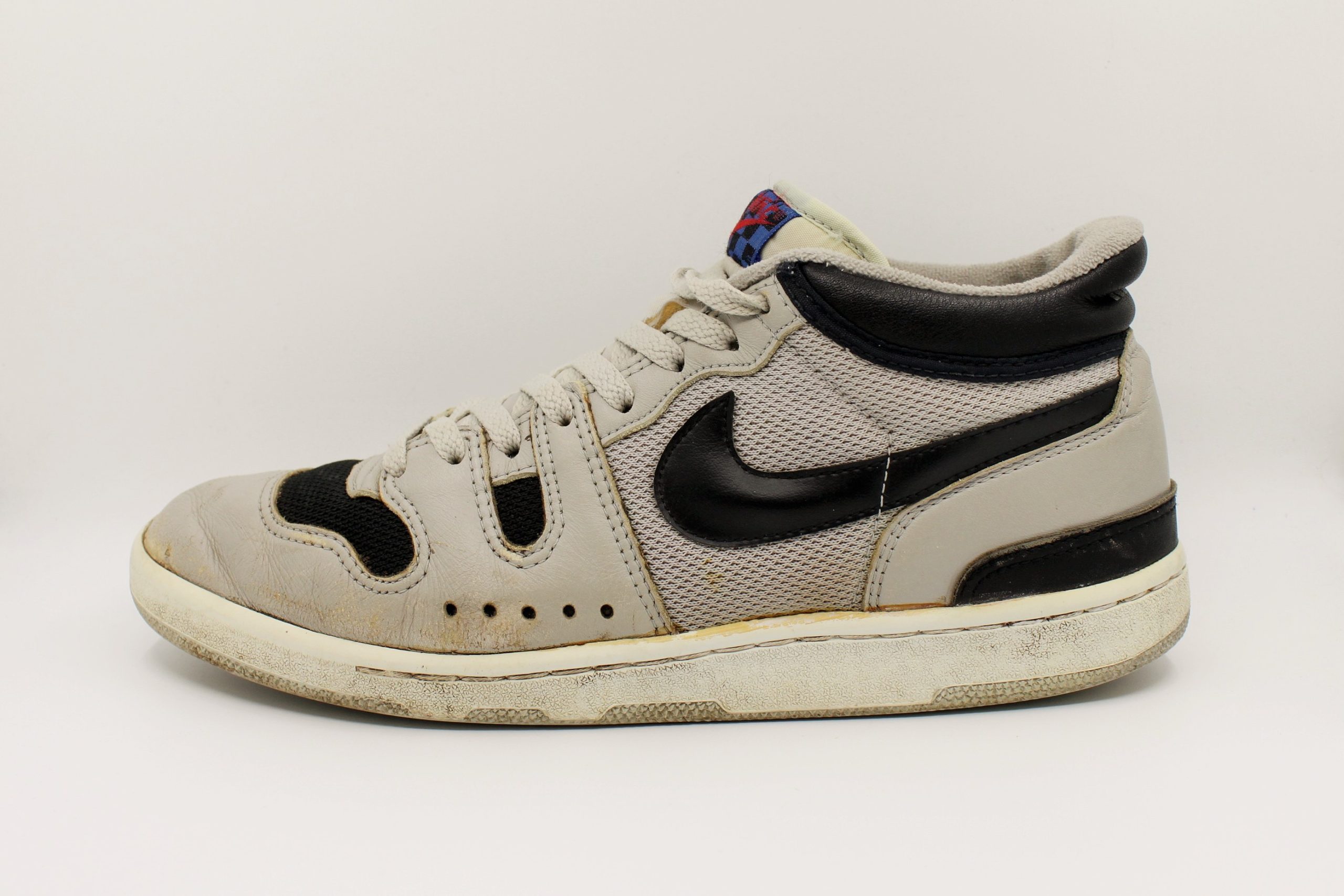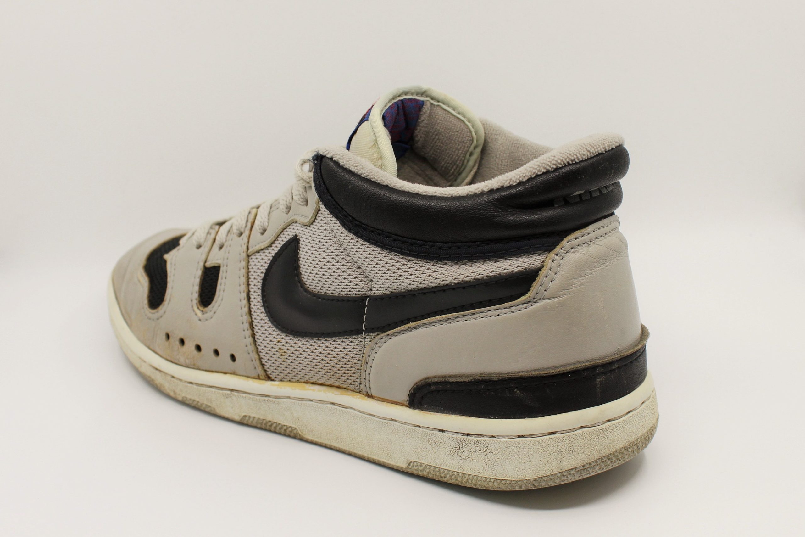 Als der Schuh Mitte der 80er Jahre als Tennisschuh auf den Markt kam, sorgte er sofort für eine Menge Aufmerksamkeit. Es war der Signatureschuh vom Enfant Terrible des Tennissports – John McEnroe. Er hatte den Tennissport der ersten Hälfte der 80er Jahre dominiert, gewann bis 1984 jeweils drei Mal Wimbledon und die US Open und stand zudem in vier weiteren Finals bei Grand Slam Turnieren. Aber er war ein Rebell. Er polarisierte die Massen, geliebt und gehasst zugleich. Ein Image, das Nike geschickt nutzte. In Anlehnung an den 50er Jahre Filmklassiker “Rebel without a Cause“ mit James Dean launchte Nike die Werbekampagne “Rebel with a Cause“, in deren Mittelpunkt John McEnroe stand. Und dann kam 1984 der Mac Attack, der dieses Image auf eine gewisse Art und Weise wiederspiegeln sollte. Die Zunge des Schuhs zierte das für den sonst so weißen Tennissport revolutionäre Mc-Logo, ein blau-schwarzes Checkerboard Muster, welches das Markenzeichen McEnroes war. Auch das schwarz-graue Upper des Schuhs entsprach nicht unbedingt dem gewohnten Look der Tennisspieler. Leider sind in der kurzen Lebenszeit des Mac Attacks nur wenige Colorways auf den Markt gekommen. Manche Sammler sprechen von mindestens zwei Farben, andere sogar von mehr. Diejenigen, die sich damals den Mac Attack geholt haben, taten dies aus Überzeugung, aus Liebe zum etwas anderen Tennisprofi. Man spielte und trug den Schuh natürlich mit Stolz solange, bis er auseinander fiel. Das ist wohl auch der Grund, warum es heute kaum noch gut erhaltene Exemplare des Mac Attacks gibt. Zum besseren Vergleich des Nike Squash Type mit dem Nike Mac Attacks haben wir uns um ein Paar bemüht, so dass ihr selber urteilen könnt.