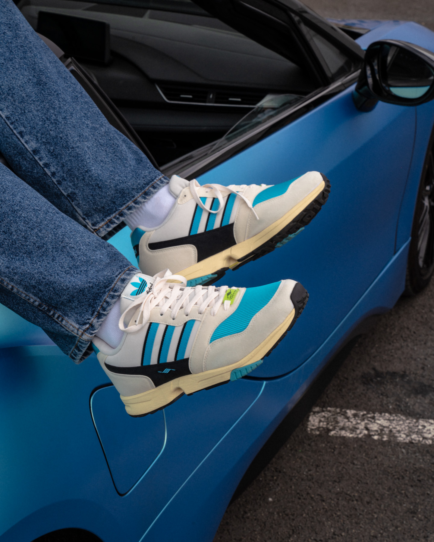 The wait is finally over! The long-awaited AZX collection from adidas is finally here and the ZX 1000 from 1990, which has never been available as a retro before, will be the first to start. Due to the worldwide pandemic, there have been several delays and postponements and some of you have been a little nervous because of all the back and forth. But your patience should pay off, because the ZX 1000 has become a jewel, that is for sure! Unlike the 2008 AZX series, this time there will be no alphabetical order, as the start will be with the R, which stands for RETRO. The model has a synthetic suede upper, which picks up the vintage look in colour. The toebox is made of mesh and drenched in a beautiful blue colourway, as does the heel, which is enhanced by pinstripes. The fabric stripes also have the significant blue, contrasted with a black stripe. The famous Torsion wave is also included as well as the yellow “bone” in the two-piece sole, which is made of PU.