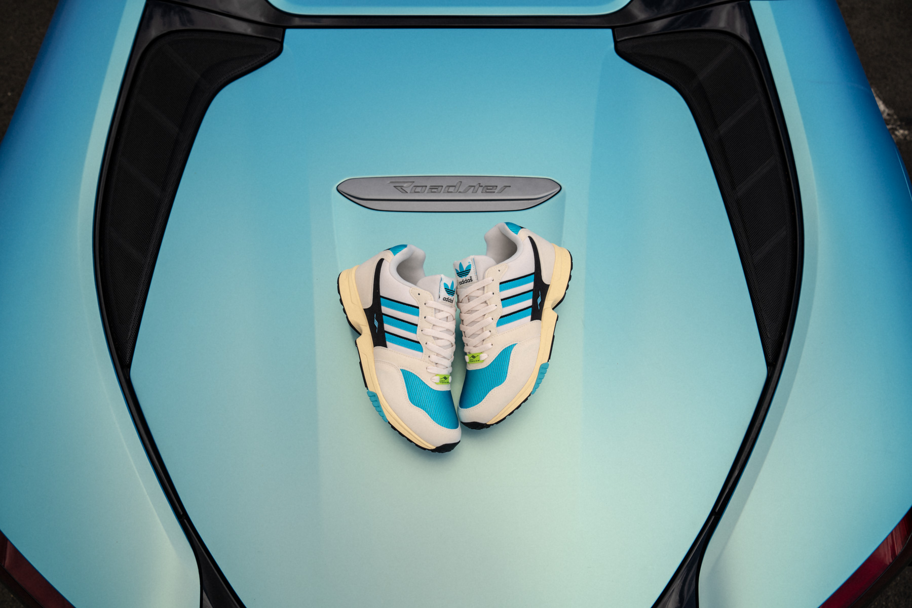 The wait is finally over! The long-awaited AZX collection from adidas is finally here and the ZX 1000 from 1990, which has never been available as a retro before, will be the first to start. Due to the worldwide pandemic, there have been several delays and postponements and some of you have been a little nervous because of all the back and forth. But your patience should pay off, because the ZX 1000 has become a jewel, that is for sure! Unlike the 2008 AZX series, this time there will be no alphabetical order, as the start will be with the R, which stands for RETRO. The model has a synthetic suede upper, which picks up the vintage look in colour. The toebox is made of mesh and drenched in a beautiful blue colourway, as does the heel, which is enhanced by pinstripes. The fabric stripes also have the significant blue, contrasted with a black stripe. The famous Torsion wave is also included as well as the yellow “bone” in the two-piece sole, which is made of PU.