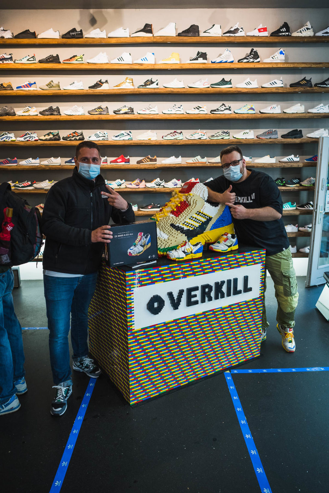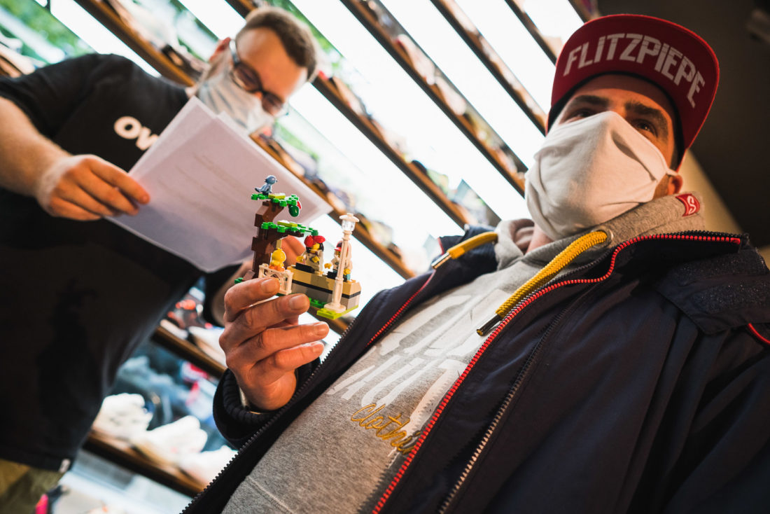 Despite the rather modest weather, several hundred both ZX and Lego enthusiasts gathered in front of the store with the given distance and mask. Finally arrived inside the store, everyone was allowed to participate in our quiz. Marc and Julian had 3 questions for everyone, which asked for knowledge about adidas, Lego and Overkill.