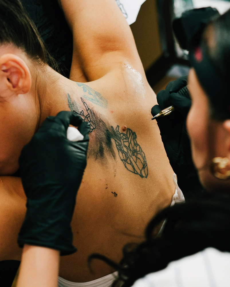 Um die Veröffentlichung des Wmns Air Jordan 4 “Shimmer” zu feiern, haben uns Mariel und Jana – zwei in Berlin lebende Tätowiererinnen – in ihre Safe Spaces eingeladen. Sie haben uns einen Einblick in die weibliche Selbstbestimmung in ihrem Leben und ihrem Arbeitsumfeld gewährt.