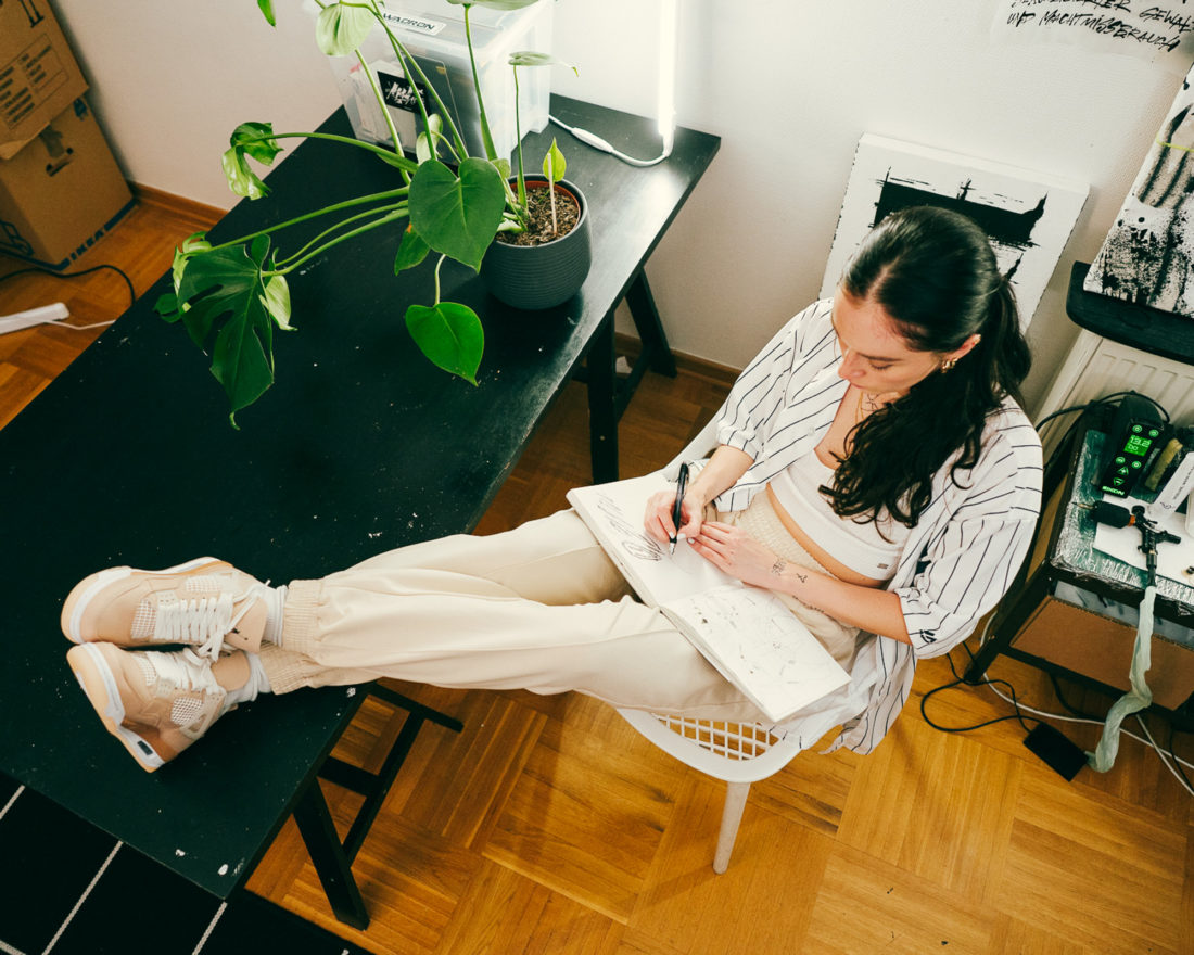 To celebrate the release of the Wmns Air Jordan 4 “Shimmer”, Mariel and Jana – two Berlin-based tattooers – invited us into their safe spaces to give us a strong insight on female empowerment in their surrounding.