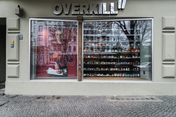 In diesen ersten Jahren gab es bereits Ausstellungen, Konzerte, Parties, Kunstaktionen und viele weitere interessante Veranstaltungen direkt im Laden. Die Bekanntheit von OVERKILL begann ab hier stätig zu wachsen. 2007-2008 – Der grosse Umbau und die Erweiterung. Das Angebot an Sneakern, Graffitbedarf und Textilien stieg beständig und OVERKILL erweiterte sich durch einen massiven Um- & Ausbau seiner Flächen und einem ganz neuen Verkaufskonzept von 60m2 auf nun 250m2. Die 1. Etage wurde im Stil einer typischen Berliner Altbauwohnung eingerichtet, wohingegen das Erdgeschoss in eine Shop-Galerie mit Showroom Charakter umgewandelt wurde.